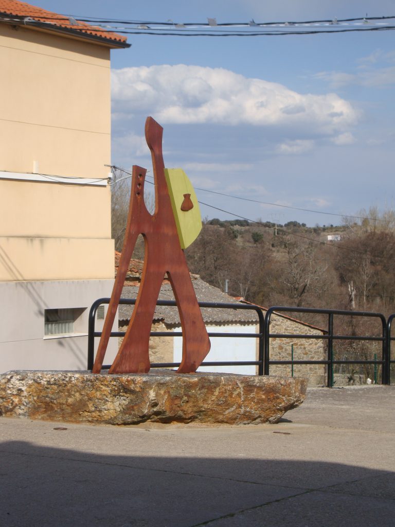 Rionegro del Puente. Escultura de homenaje al Peregrino (hierro, madera y piedra)